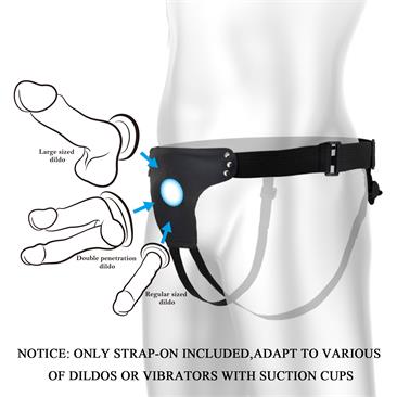 Este arnés es cómodo, versátil y pensado para adaptarse a ti: incluye una correa adicional para caderas grandes, porque el placer no entiende de tallas ni de moldes. Se ajusta fácilmente y te da la seguridad que necesitas para moverte con confianza.