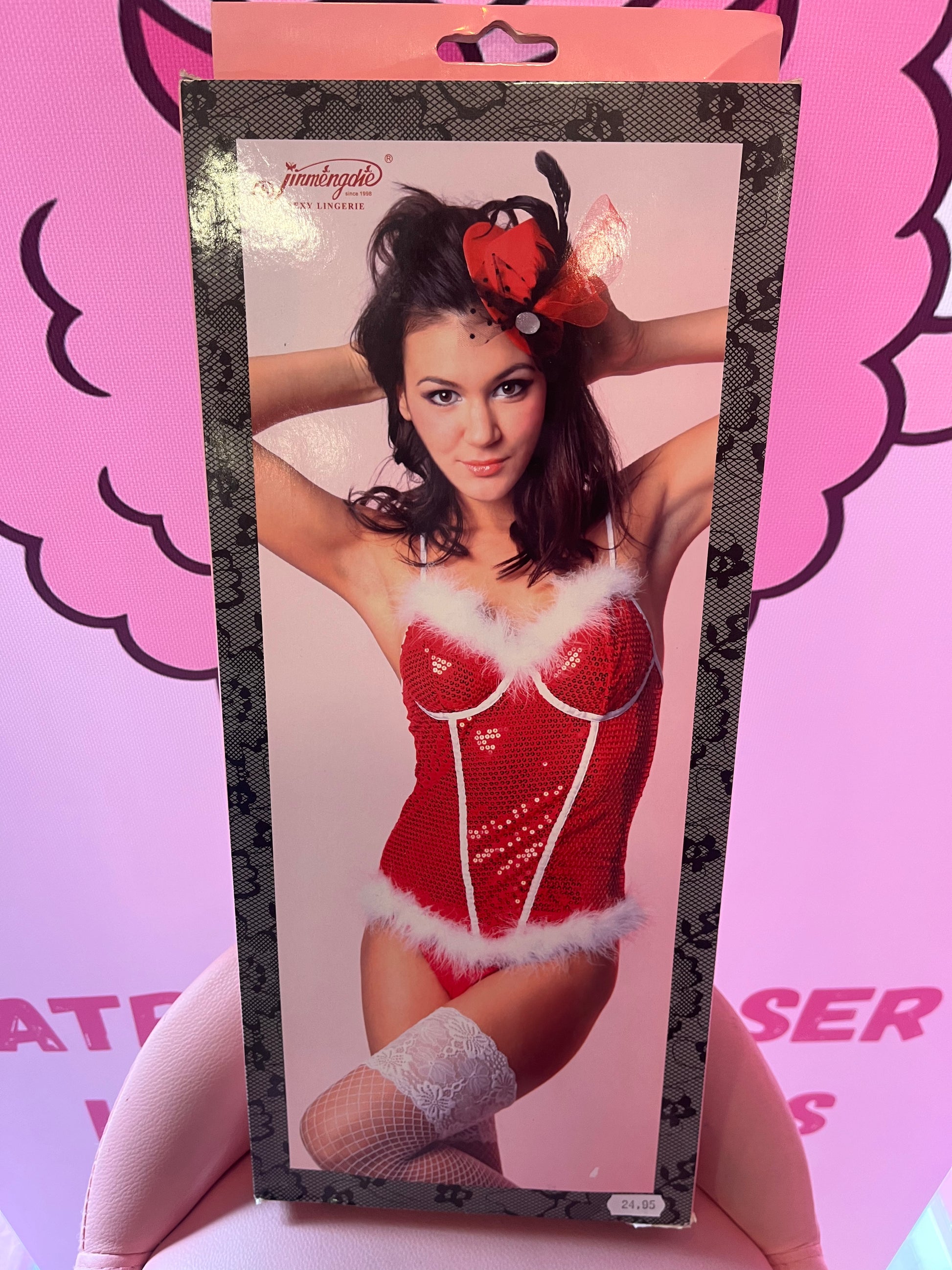 CONJUNTO DE CORSE LENTEJUELAS ROJO Y TANGA FESTIVO NAVIDEÑO - JINMENGDIE